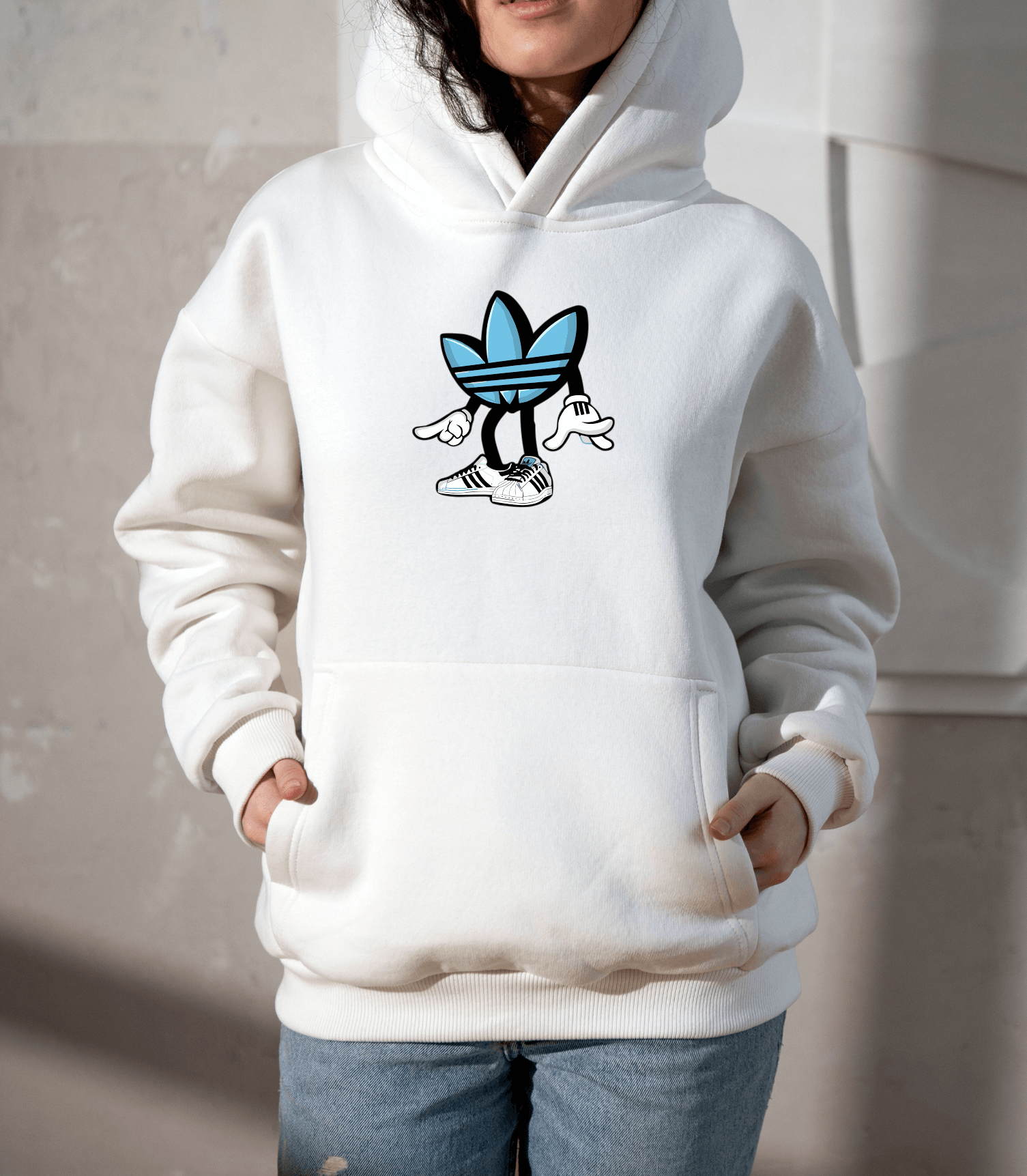 הטוויסט הכי מגניב ללוגו המוכר — דמות אנימציה עם נעלי אדידס! מושלם למי שאוהב להיות שונה 👟.