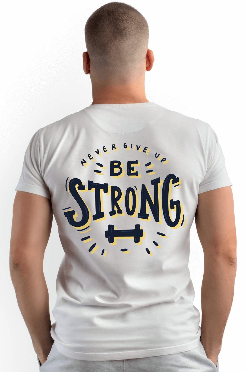 חולצה לבנה עם הדפס בגב "Be Strong" – עיצוב מלא אנרגיה שמזכיר לא לוותר, לא משנה כמה קשה הדרך.