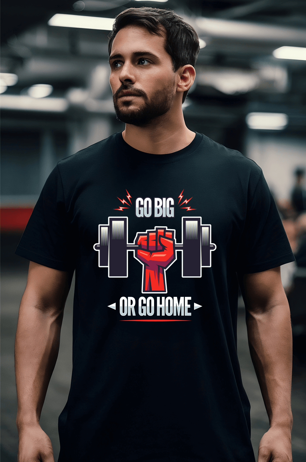 חולצת ספורט שחורה עם הדפס "Hustle for the Muscle" ומשקולות – מושלמת לחדר הכושר, למי שחי את האימונים ולא מוותר לעצמו.